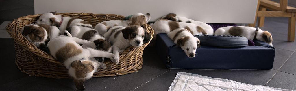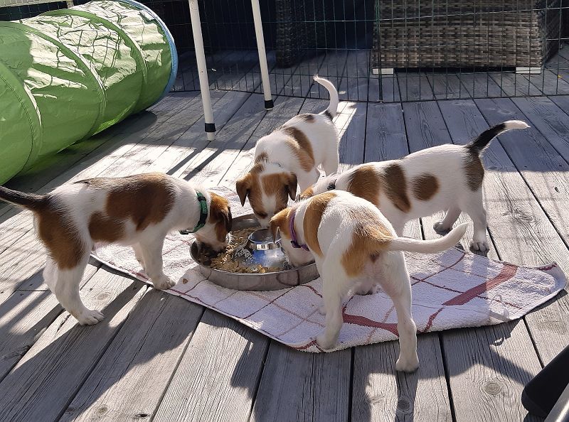 Valparna är snart 7 veckor och känslan av att de snart ska vara hos sina för-alltid familjer växer. Men fokus denna vecka är att fortsätta med hanteringen, besök av valpälskare och även individuellt spel. Valptänderna bekantade sig med tandborsten i veckan. Den här veckan var vädret så fint att vi kunde vara ute varje dag och göra våra små turer i "bilen". Leken sinsemellan blir mer aggressiv och Bella ingriper när hon tror att gränsen är nådd. Bella låter fortfarande valparna dia då och då, men man ser tydligt hur obehagligt det är för henne.