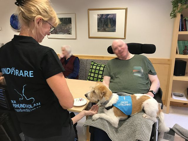 svenska terapihundskolan.Vi har jobbat inom äldre-, demens- och palliativ vården. Även på